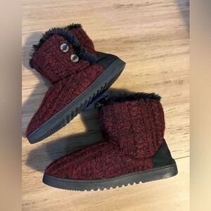 Dearfoams red knit with very softy faux fur lining women sock bootie size L 9/10