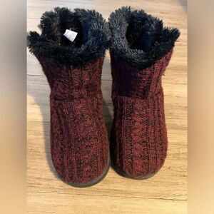 Dearfoams red knit with very softy faux fur lining women slippers size L 9/10