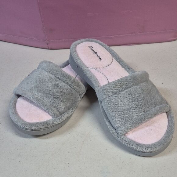 Dearfoams Size Medium 7-8 Color Pink and Gray Rubber Bottom Slipper New without Tags Cart 11,A,6