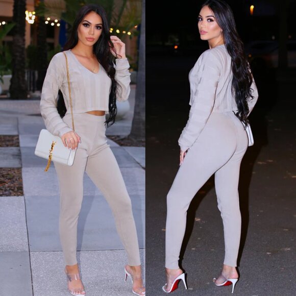 Dearoma Long Sleeve Crop Top and High Waist Pants Set