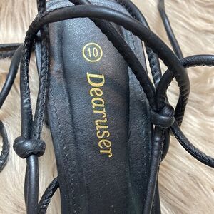 Dearuser Square Open Toe Lace up Wrap Chunky High Heels Strappy Block Sandals