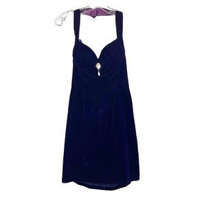 Deastock Vintage 90s L.A. Glo Purple Velvet Halter Mini Dress Padded - Size 10
