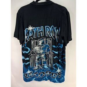Death Row Records Mens Blue & Black Button-Up Short Sleeve Shirt M
