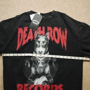 This brand new Death Row Records long sleeve sweatshirt showcases the iconic logo in vivid red against a sleek black fabric, creating a bold and stylish look. Perfect for casual wear, it offers comfort while making a statement with the striking color contrast. The design captures the essence of the legendary music label's signature style.