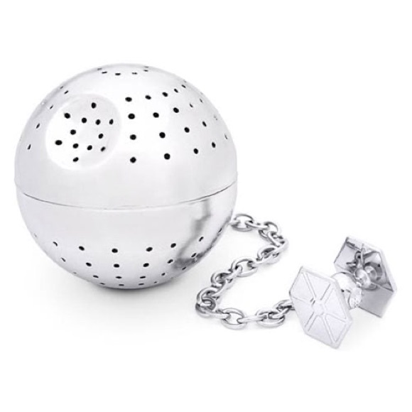 Replica of the Death Star with tie fighter. For loose leaf tea. Stainless steel. Approx 2” Officially Disney Star Wars licensed by Think Geek.