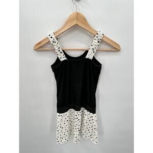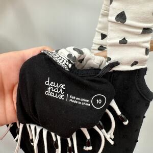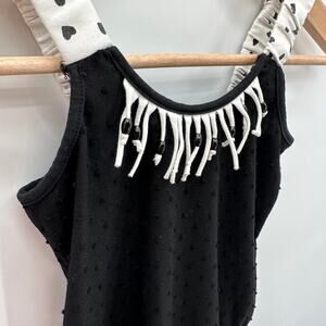 Deax Par Deux Black & White Heart Print Romper with Fringe Detail // 10