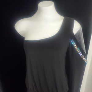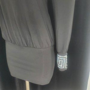 Deb Black 1 Open Shoulder Sleeve Cocktail Dress, Jeweled Sleeve & Cuff Size Med.