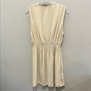 Elegant cream dress with ruffle details. Sleeveless design. Perfect for any occasion. Item: 346