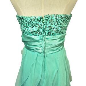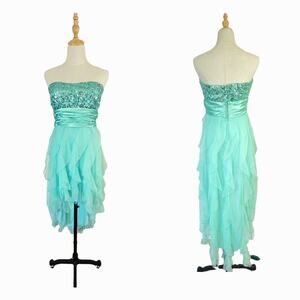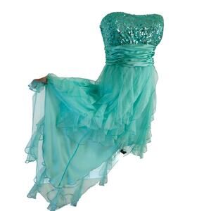 Deb Pastel Green High Low Strapless Dress Chiffon Ruffles Fairycore Mermaid 13