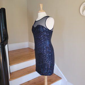 Deb Sequined and Sheer Party Cocktail Blue Mini Dress. Size L Youth