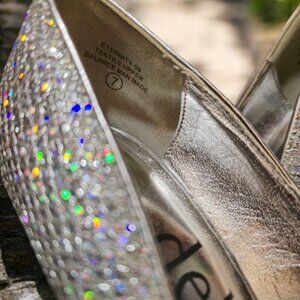Deb Silver Glitter Peep‑Toe Stilettos – Formal High Heels w/ 4” Heel Size 7