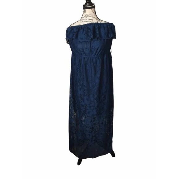 Deb Womens 1X Navy Lace Flowy Maxi Dress Off Shoulder Strap Boho Resort Summer
