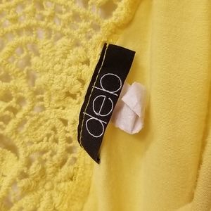 Beautiful back as well as cap sleeve design. Cinching on the sides. Bright yellow colour. No rips or stains.
