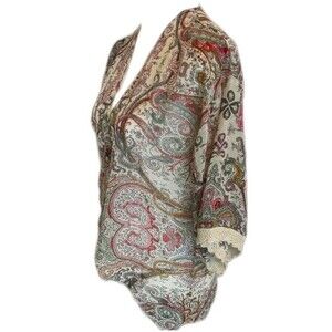 Deb sheer silky polyester boho kimono shawl wrap cardigan w/ crochet S