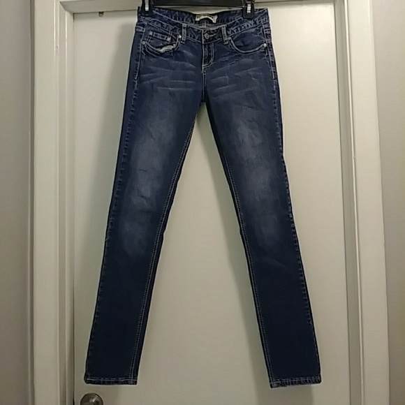 Authentic denim debjeans size 5 regular blue jean with cream and white stitching great condition
