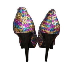 Deb Women's Multi Colored Rainbow Pride Sequin Platform Stiletto Heel Pumps Size 9