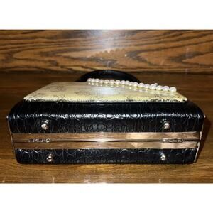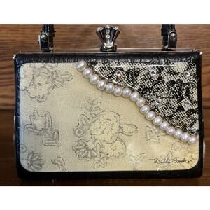 Debbie Brooks Black White Silver Mini Clutch Handbag Evening Bag Pearls