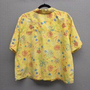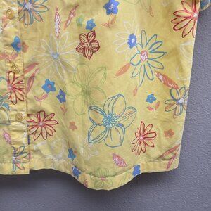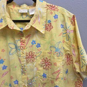 Debbie Brooks Shirt Womens 18W 20W Yellow Floral Button Up Short Sleeve Summer