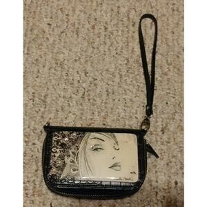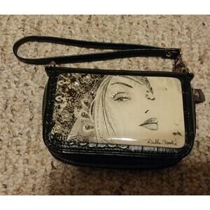 Debbie Brooks New York Wrist Bag in the Face Design. It is gently used, no damage/issues noted. It is primarily black croc embossed, with glitter/Swarovski crystals embellishing it. Boutique item.