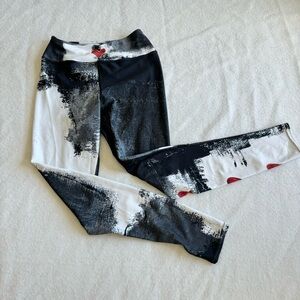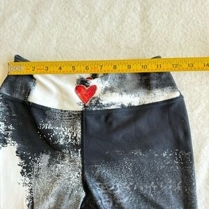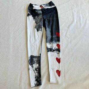 Debbie Dannheisser leggings with abstract white & white print with red hearts. High-Waisted style. Size M. Full length inseam - 27”. Pre-owned, in great condition. No flaws:) beautiful and soft.