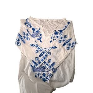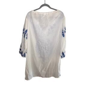 Debbie Katz White Blue Embroidered Boho Beach Cover Up Dress Size M