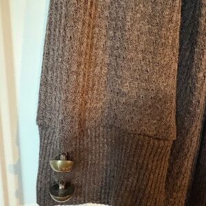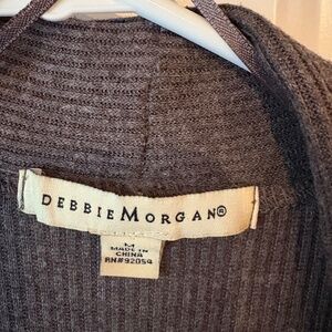 Debbie Morgan brown shawl collar sweater, size medium, 2 button accents on the 3/4 length sleeves. Excellent condition. 85% polyester, 15% rayon