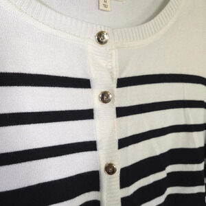 Debbie Morgan Cardigan Stripes Gold Button Size Medium Preppy Office Coastal
