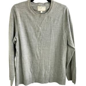 Debbie Morgan L Grey Ribbed Knit Crew Neck Long Sleeve Sweater