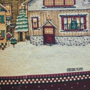 Debbie Mumm Glittery Snowy Tapestry Wall Hanging With Flying Snowmen & Houses