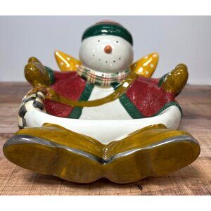 Debbie Mumm Snowman Themed Ceramic Bowl 10.5" Long