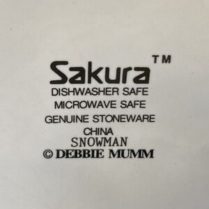 Multicolor Adorable Snowman stoneware crock by Debbie Mumm for Sakura 7" x 5" featuring 3 different snowmen on sides. In very good clean condition...no chips or cracks. Comes from a smoke free home.