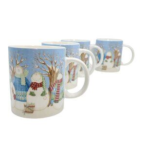 Debbie Mumm Winter Wonders Snowman Family Ceramic Coffee Mugs 14oz Set Of 4pc