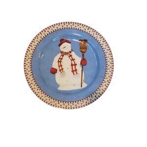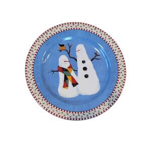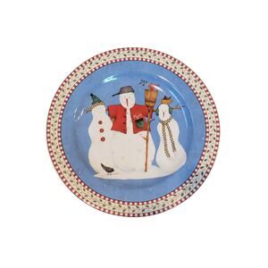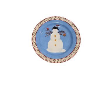 Add a touch of whimsy to your table setting with this charming set of four Debbie Mumm's Sakura Oneida stoneware plates! Featuring delightful snowmen designs in cheerful blue and red, these 8-inch plates are perfect for salads or desserts.