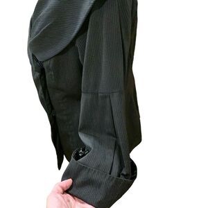 Debbie Shuchat Vintage Black Wool Blazer Shawl Collar 3/4 Sleeves Women Size 10 in Very Good Pre-Loved Condition, no rips, tears or stains