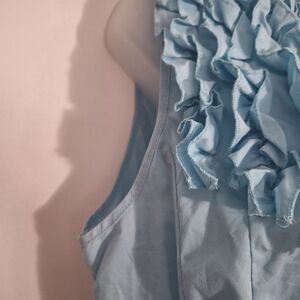 Chic sleeveless blouse with ruffled front. Elegant high neck design. Perfect for any occasion. Feminine, Dressy, Bridal, Wedding, Outings, Shopping, Dining, Night Out, Events, Cosplay