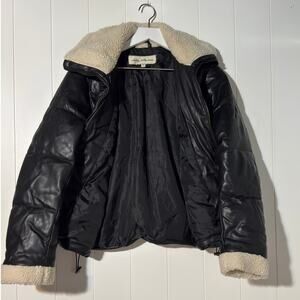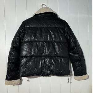 Debby Collection · Small · Faux Leather · Puffer · Sherpa Trim · Black Cream