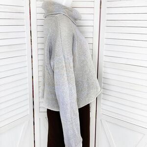 Debby Mitchell Cowlneck Crop Sweater Gray Tan Small