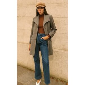 Debenhams Vintage 1970's Wool Lady Coat Sz 6 Button Front Long Jacket Gray EUC!