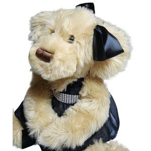 Debi Lilly Floral Services Vase Holding Bear Plush in Black Dress w Rhinestones