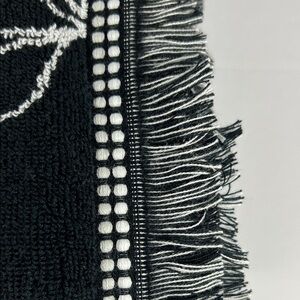 Deborah Connolly Bath Towel Set Floral Black White with Fringe Plush Cotton NEW