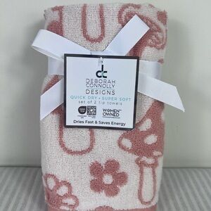 Deborah Connolly Mushroom Finger Tip Towels Pink White Quick Dry Set of 2 NEW