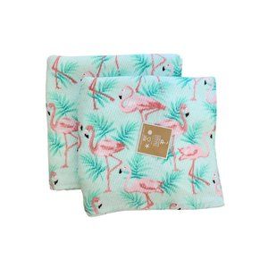 Description: Deborah Connolly Designs set of 2 flamingo bath towels.