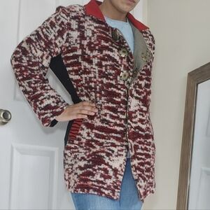 Deborah Cross Sz Lare Wool Red Black Collared Button Up Jacket Textile Artist