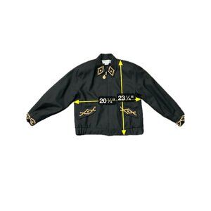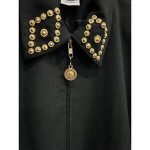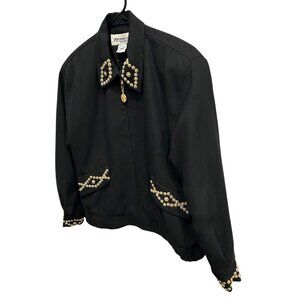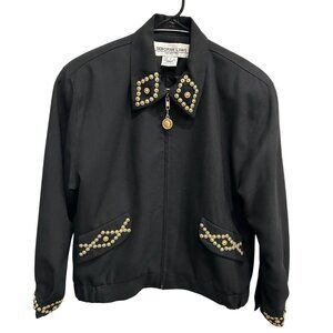 Deborah Laws Black Studded Jacket Decorative Gold Buttons Front Zip Sz Medium