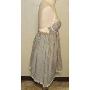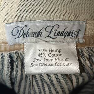 Deborah Lindquist Vintage Y2K Blue & Cream Striped Hemp & Cotton Halter Dress S