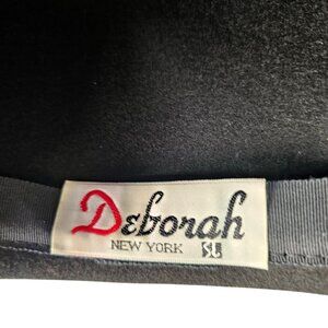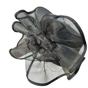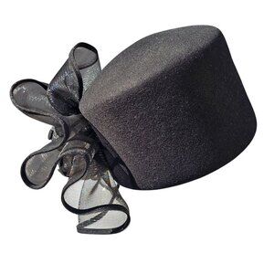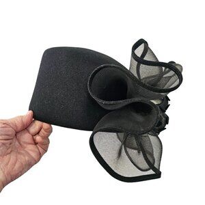 Deborah NY Asymmetric Black Felt Pillbox Hat Large Mesh Bow Size M NEW