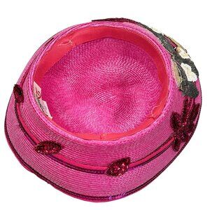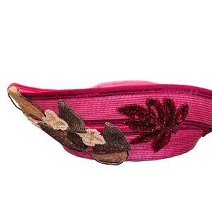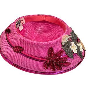 Step into a world of elegance with this striking pink wide-brim hat by Deborah New York. Perfectly adorned with shimmering sequin floral appliques, this hat promises to be an eye-catching accessory at garden parties or sunny gatherings, offering both style and sun protection.