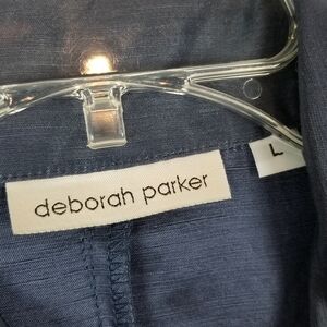 Deborah Parker Women Linen Silk Button Blouse Top Size Large Blue Covered Button