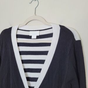 Debra DeRoo Cardigan Black White Striped Super Soft Preppy Academia Size Small