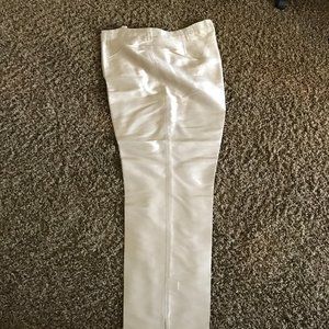 Beautiful elegant long jacket and pants. Perfect for a spring or summer wedding. Pants have detailed hem , includes fabric tie belt, barely worn